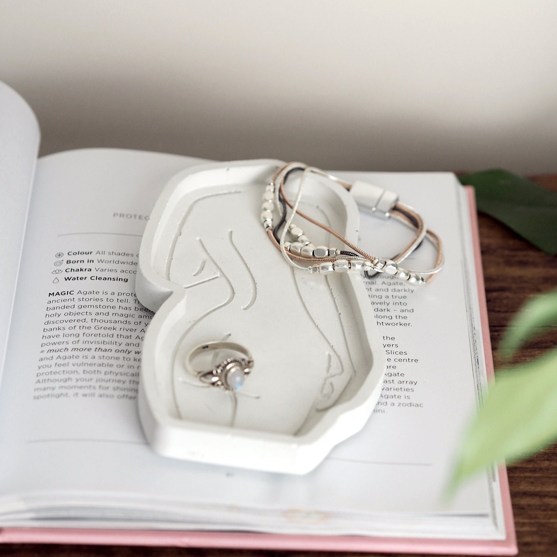 Keep your rings, earrings, and small special pieces of jewelry organised with our one-of-a-kind concrete body trinket dish. It’s the perfect companion for your dressing or bedside table. Great as a wedding, engagement, Valentine's day or birthday gift.