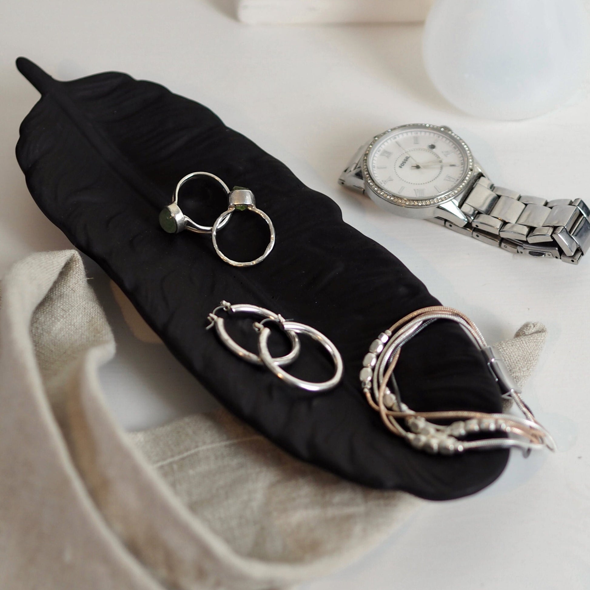 Keep your rings, necklaces, earrings and special pieces of jewellery organised with our concrete feather tray. It’s the perfect companion for your dressing or bedside table. Great as a wedding, engagement, Valentines day or birthday gift.