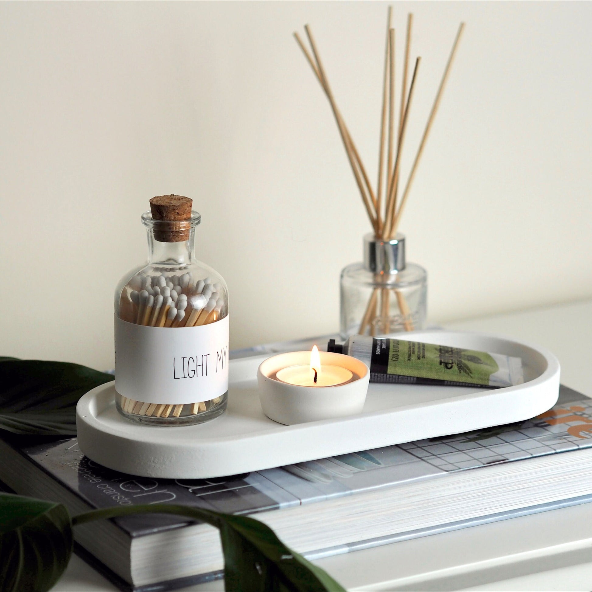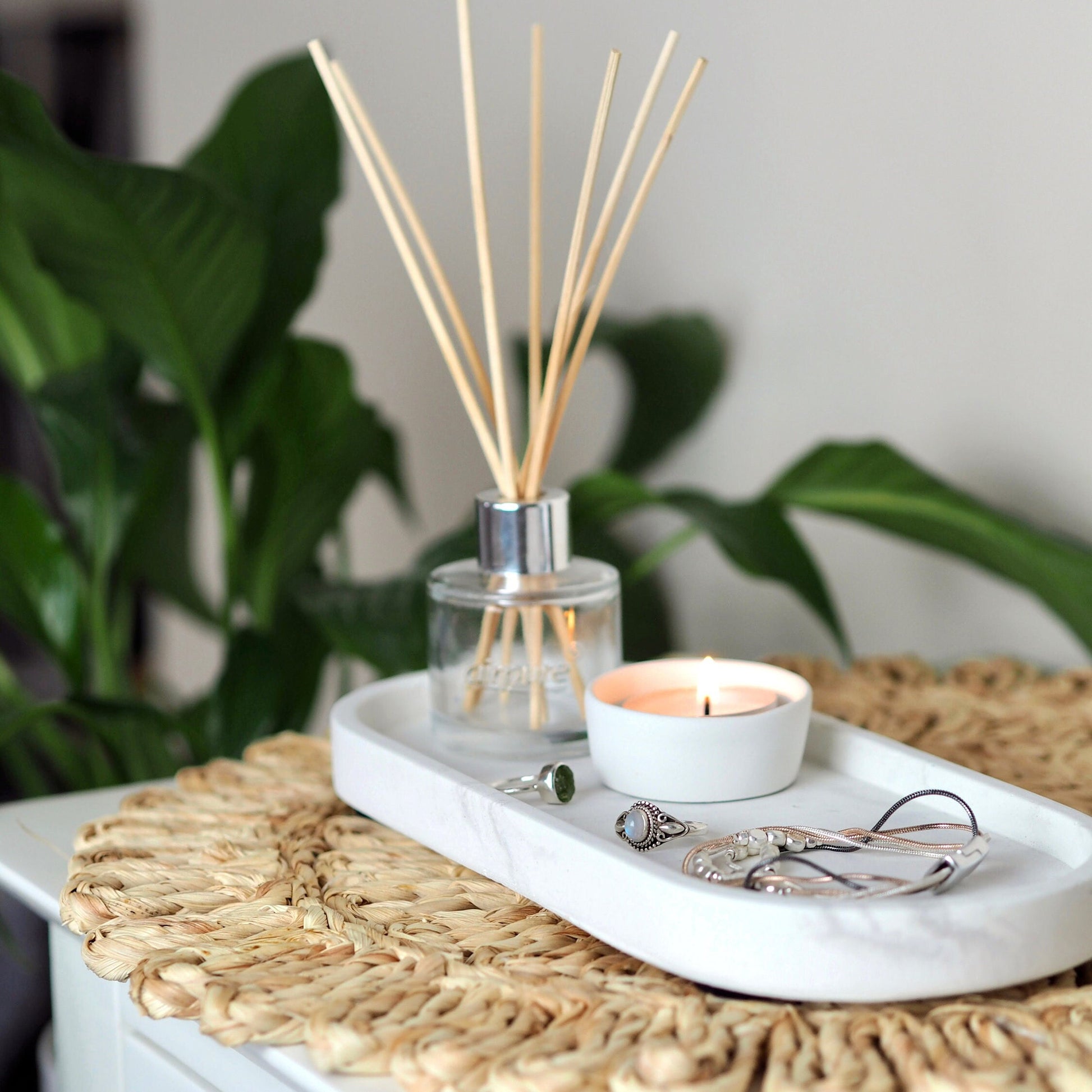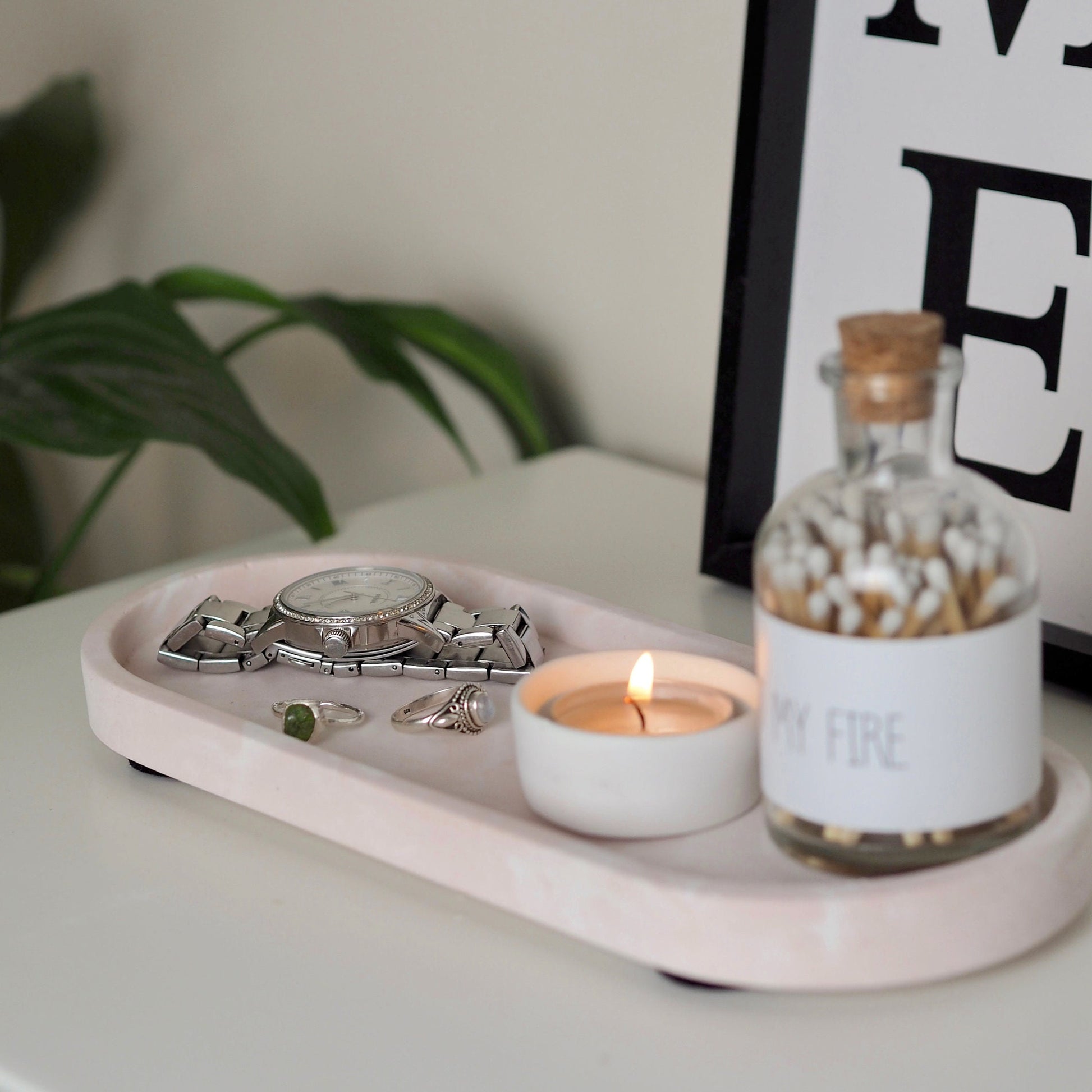 Versatile in its simplicity, our concrete Junior Ova tray has a multitude of uses. Perfect in the kitchen, bathroom, bedroom or living area, where it can be used to display reed diffusers, pillar candles, toiletries, and other decorative items.