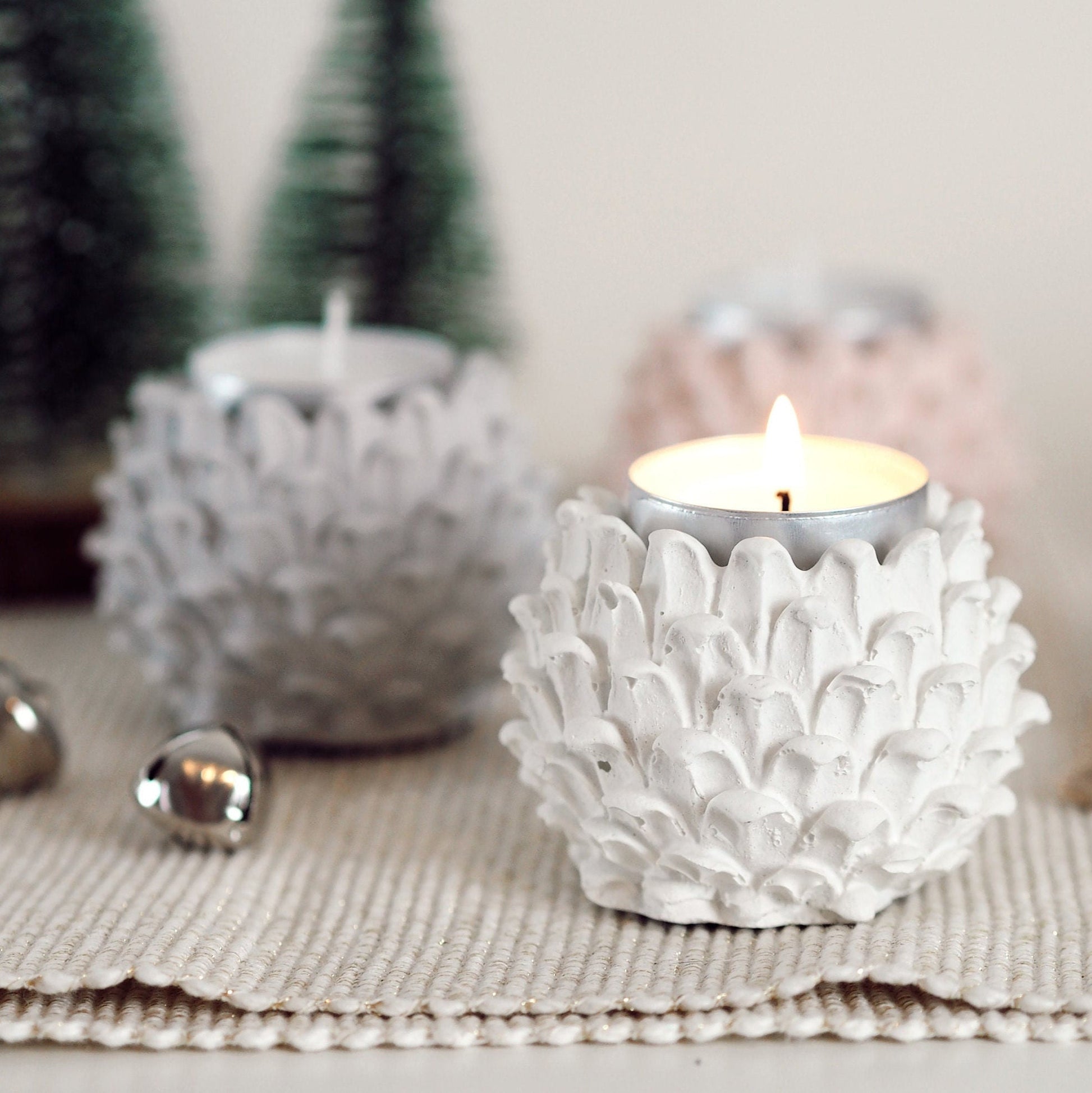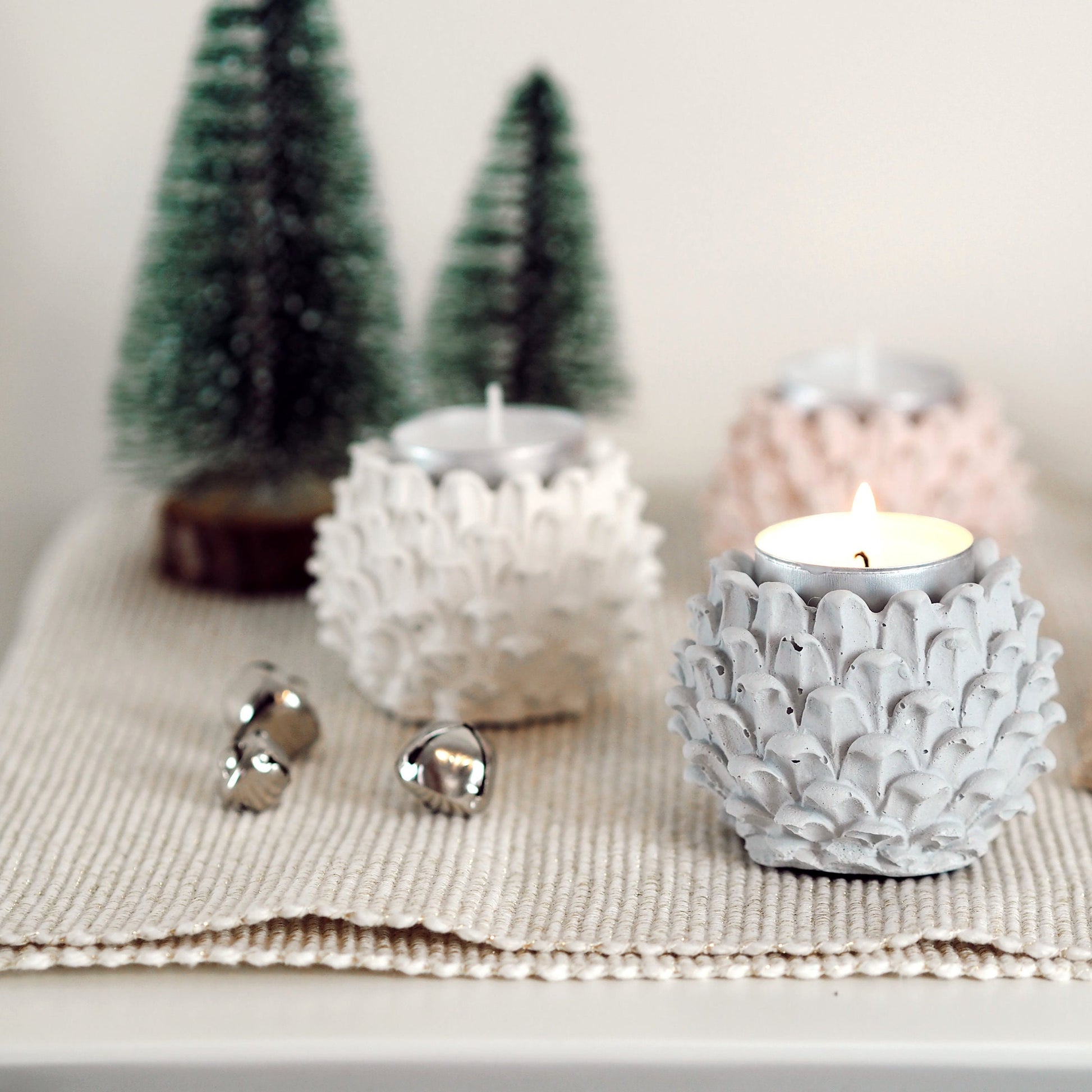 Add a modern twist to your home with our one of a kind handmade concrete pinecone tealight holder. Perfectly placed in your living room, bedroom, or bathroom. They also make a great wedding, engagement or birthday gift.