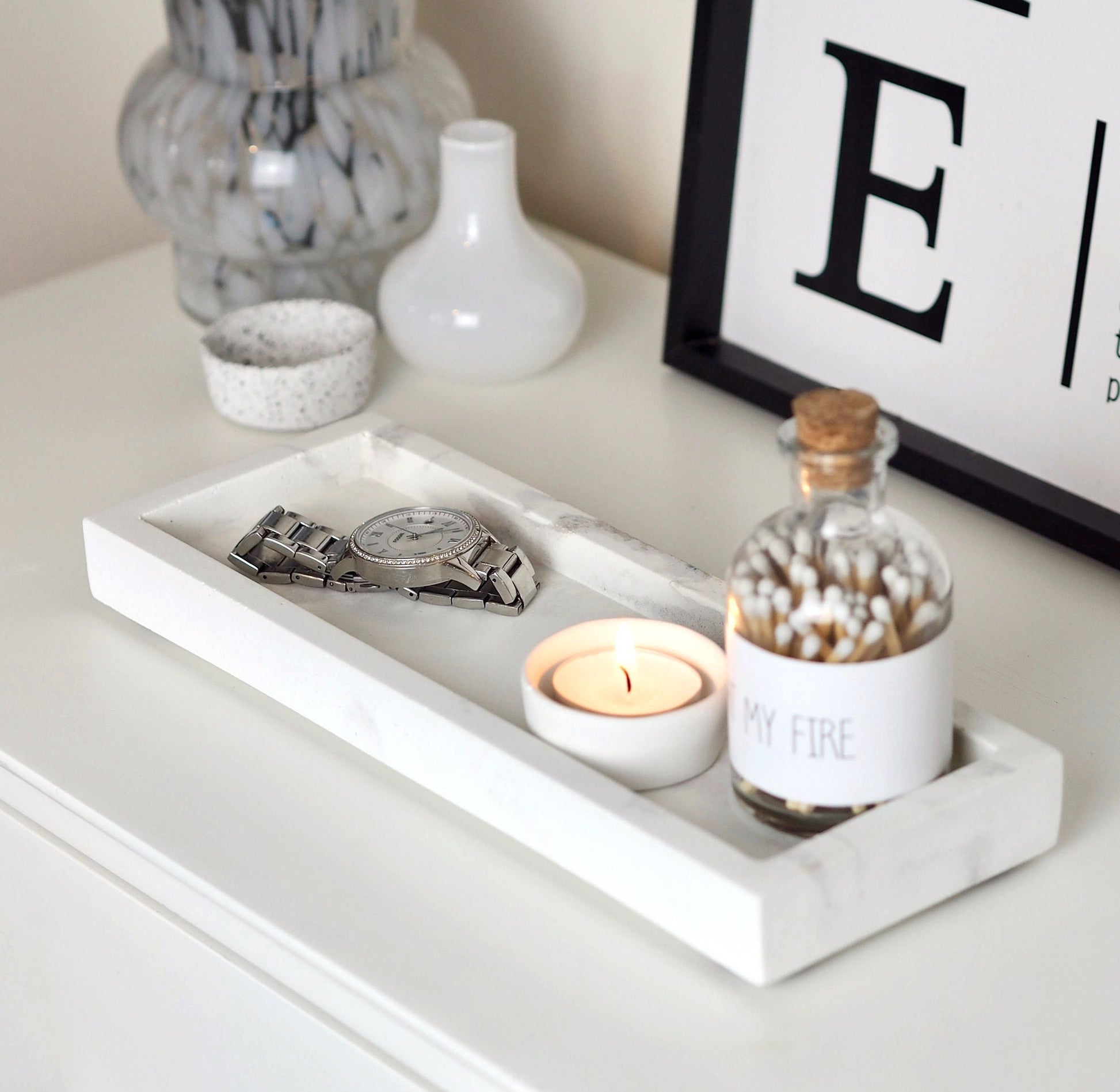 Versatile in its simplicity, our concrete Reca tray has a multitude of uses. Perfect in the kitchen, bathroom, bedroom or living area, where it can be used to display reed diffusers, pillar candles, toiletries, and other decorative items.