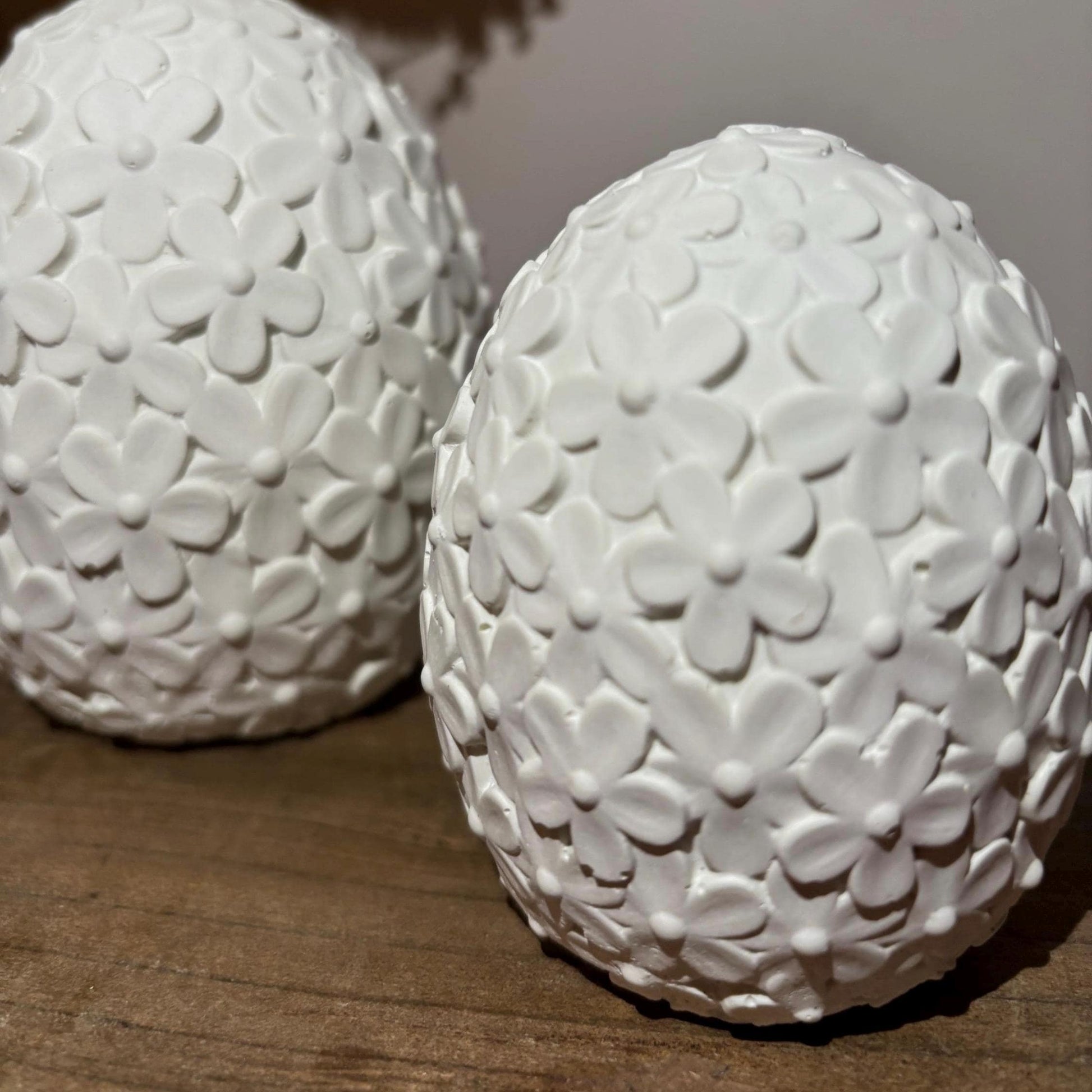 Bring a touch of Spring and texture to your home with our Handcrafted White Concrete Floral Eggs. Made from high-quality concrete, each egg is adorned with a delicate floral design, giving it a unique, modern look. Available in two sizes, these eggs are perfect for decorating Easter tables, shelves, or adding a minimalist touch to any space.
